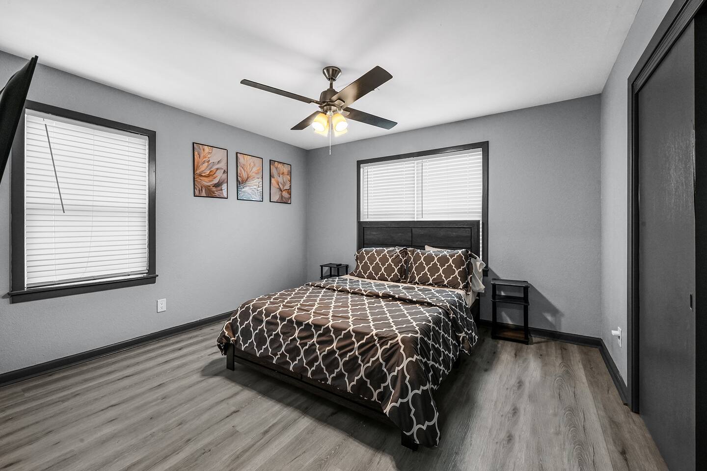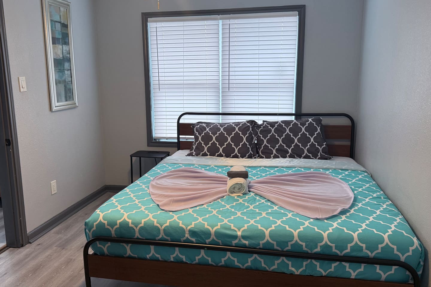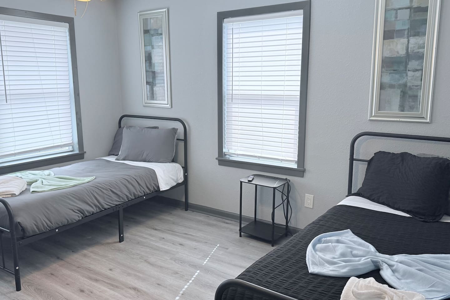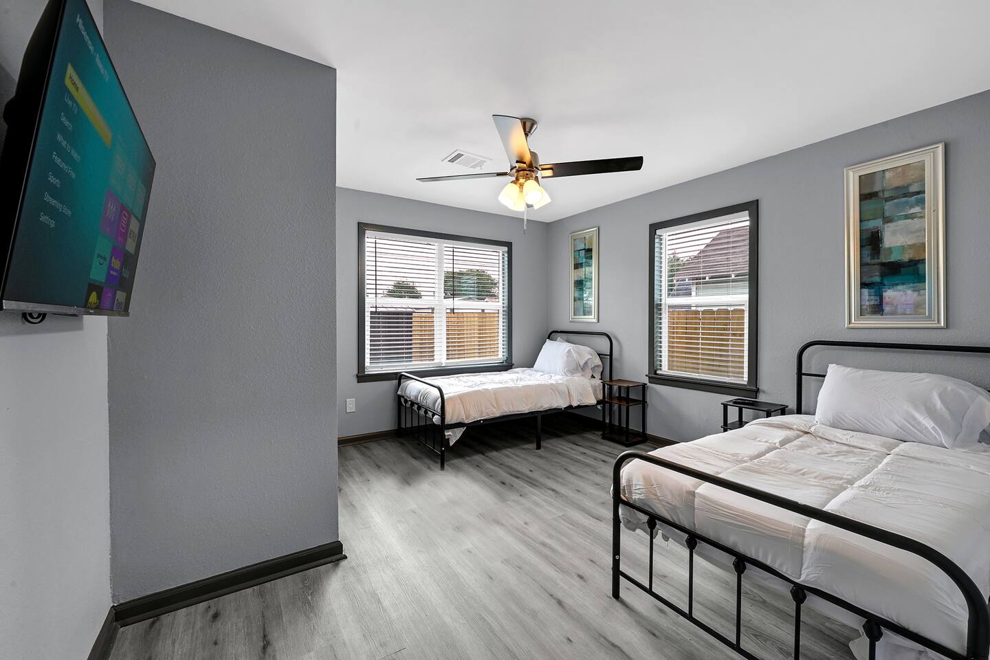 **Space & Comfort:** - **Three Inviting Bedrooms:** - Master Bedroom: Plush king-size bed for restful nights. - Second Bedroom: Equally comfortable with a queen-size bed. - Third Bedroom: Tailored for kids or additional guests with two twin beds. - - **Living Space:** Relax in the spacious living area, complete with ample seating and a flat-screen TV, ensuring entertainment and relaxation meet effortlessly. - **Culinary Ready Kitchen:** Our kitchen, equipped with modern appliances, stands ready for any culinary endeavor, from quick breakfasts to hearty dinners. **Outdoor Tranquility:** Step into the expansive backyard and find serenity. Enjoy morning coffee at the patio seating or fire up the BBQ grill for a delightful evening with friends and family. **Access & Neighborhood:** You'll have the entire house to yourself, offering privacy and freedom. Our neighborhood is rich in history, characterized by a blend of old charming 1940s properties and new constructions and some properties not renowned since 1940’s, reflecting the area's ongoing revitalization. **Additional Comforts:** Stay connected with complimentary WiFi, enjoy climate-controlled comfort with air conditioning and heating, and rest assured with on-site security cameras. **Pet-Friendly Stay:** Our doors are open to your furry friends, ensuring everyone in the family enjoys their stay. Embark on your Houston journey with us as your base. From the bustling cityscape just minutes away to the homely tranquility of our bungalow, your ideal retreat awaits. STR-2025-001263