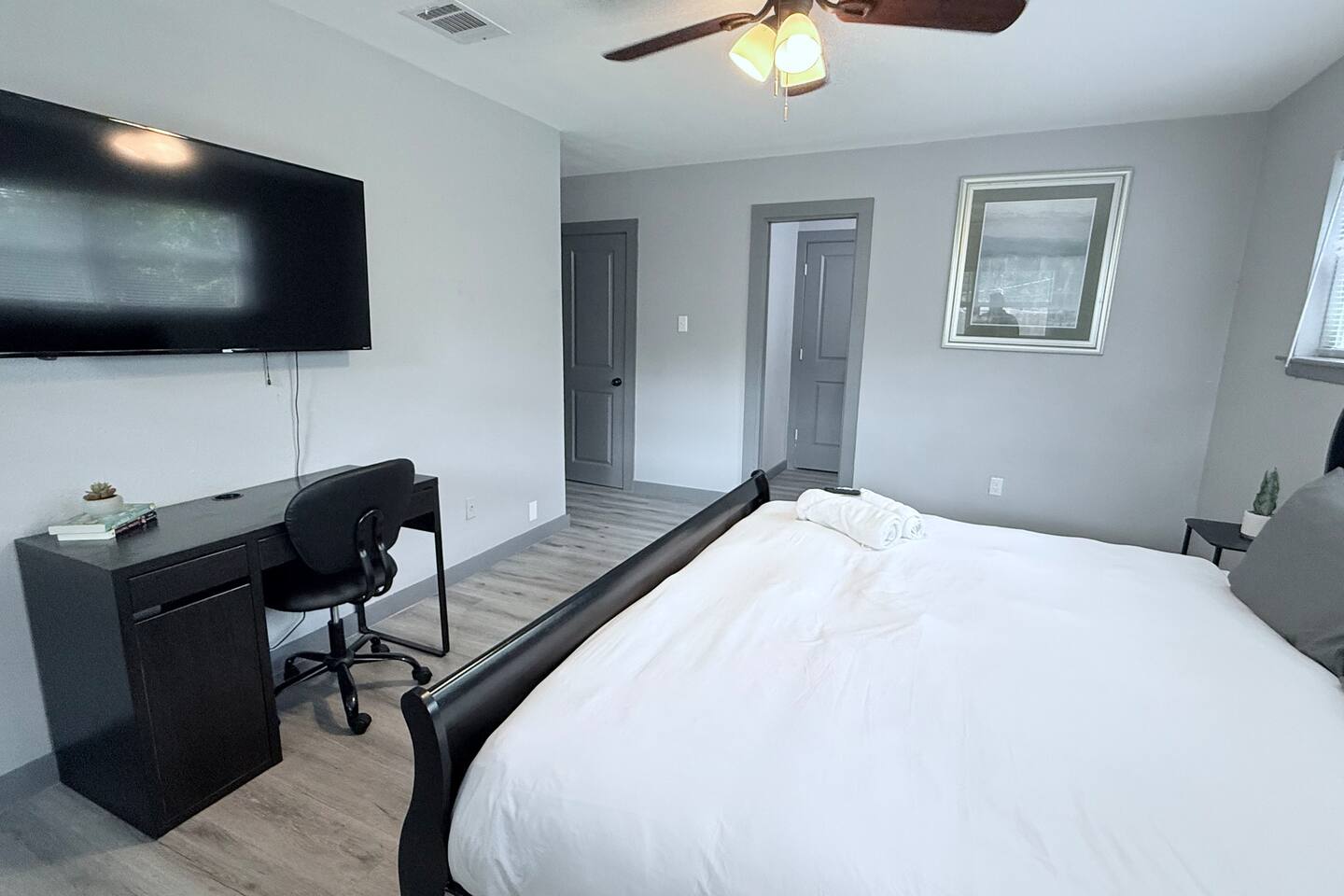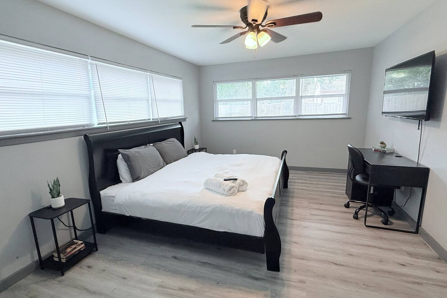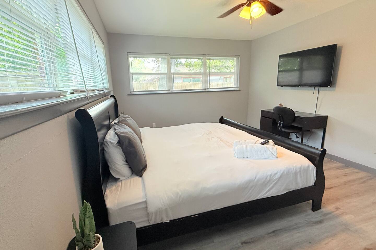 Enjoy a comfortable and convenient stay in this modern 4-bedroom, 2-bath home, perfectly located near Houston’s Texas Medical Center—ideal for medical patients, traveling nurses, doctors, and families seeking a peaceful short-term rental. Just 4 miles from the Medical Center and 10 miles from downtown Houston, offers easy access to hospitals, NRG Stadium, and major city attractions. It features new appliances, high-speed internet, Smart TVs, and a spacious fenced backyard with a BBQ grill.